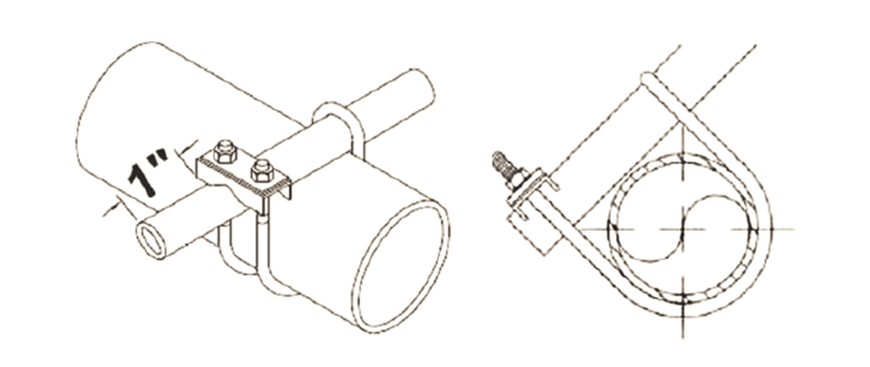 安裝:將DN25鋼管插入雙U型夾中間,固定于需要抗震連接的位置,均勻鎖緊兩端螺母,鋼管另-端固定于抗震連接座。